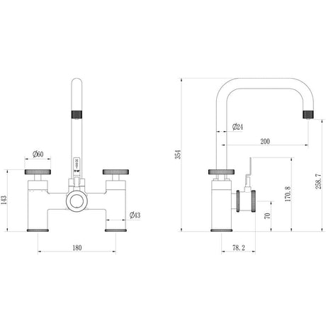 Ellsi Bishop Bridge 3in1 Instant Boiling Water Tap With Boiler & Filter - Black Ceramic Levers