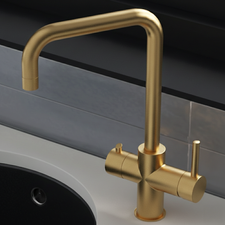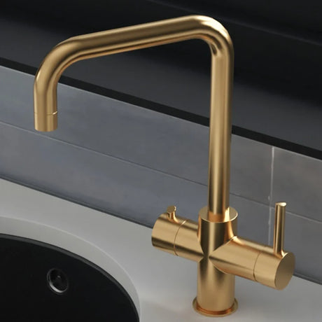 Astini Industrial 3in1 Boiling Hot Water Kitchen Tap & Tank with Brushed Brass Finish