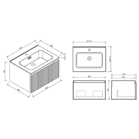Hudson Reed Fluted 600mm Wall Hung Vanity Unit & Basin, 1 Drawer