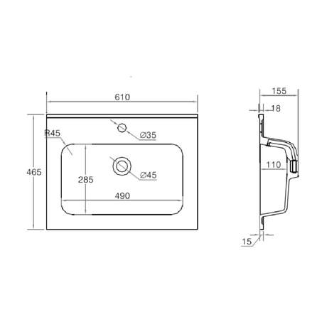 Astini Flauto 600 Wall Hung Vanity Unit & Basin